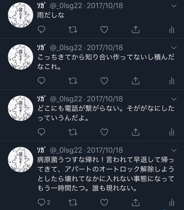 ハイライトはオートロックが開かなくて、外で一夜を過ごした日のことです。