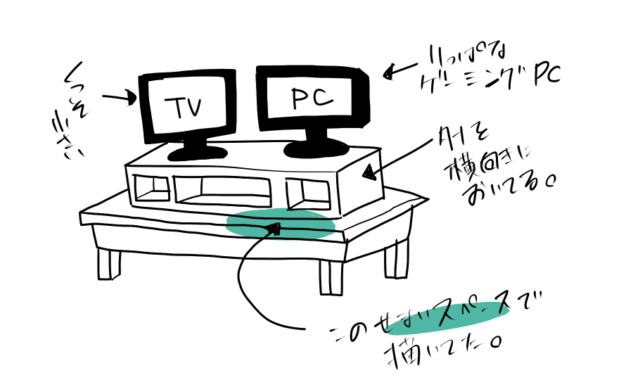 どうしても目線より低い位置にTVやPCの画面がきちゃって、